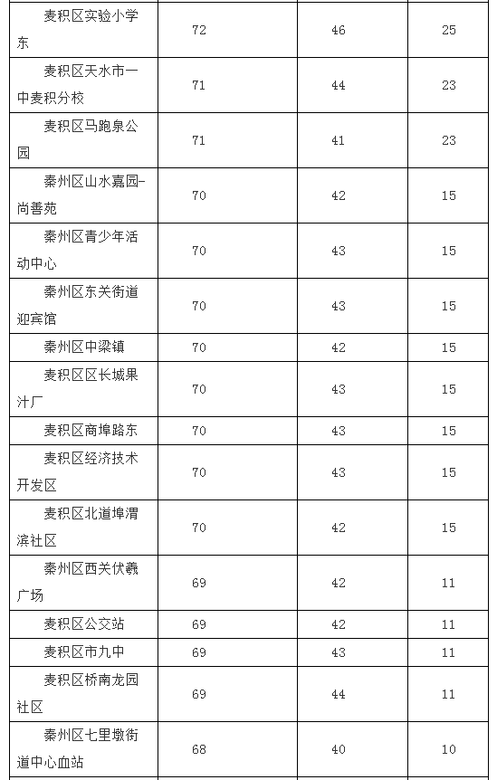 各縣區(qū)優(yōu)良天數(shù)從多到少依次是:秦州29天,張家川28天,清水27天,甘谷26天,武山26天,麥積24天,秦安23天。