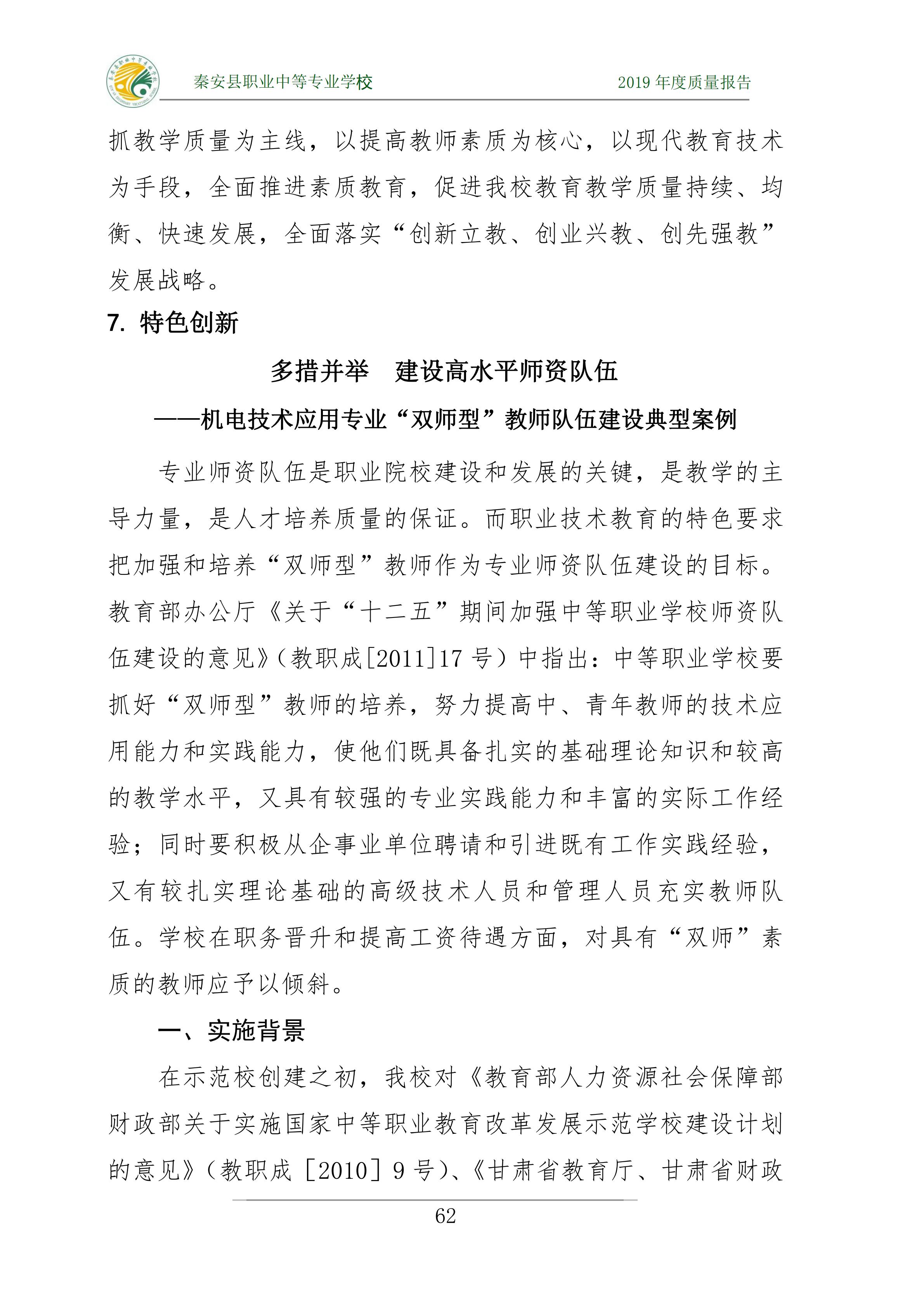 秦安縣職業(yè)中等專業(yè)學(xué)校關(guān)于發(fā)布2019年度質(zhì)量報告的公告