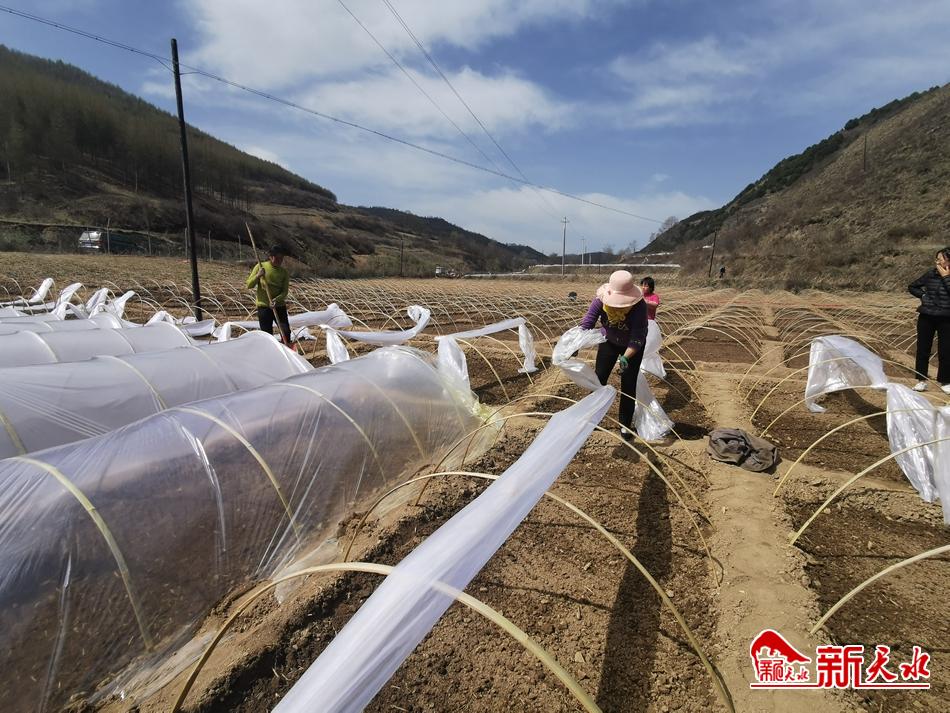 4月9日,去申川村的路上,一條條用白色地膜覆蓋了的小拱棚或排列在村路兩邊,或窩坐在山坳里、或分布在坡地上,所到之處,都能看見(jiàn)在產(chǎn)業(yè)地里忙碌的農(nóng)民和爭(zhēng)相怒放的山花,處處都是好風(fēng)光。