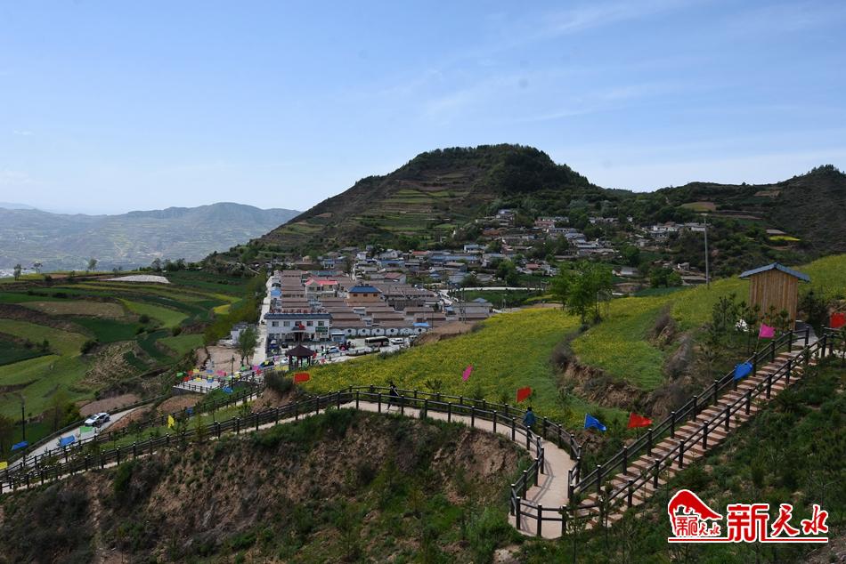龍臺鎮(zhèn)馬年村是采訪團(tuán)在武山縣的最后一站,站在觀光走廊上眺望,層層疊疊的梯田風(fēng)景如畫。萬畝油菜花田、碧波蕩漾的麥苗及青山綠水相互映襯,如同星羅棋布般構(gòu)成一道絕美的風(fēng)景線,讓人不禁想起“桃花落盡菜花黃,招引蜂蝶伴舞忙。醉是夕陽西下景,田間楚楚泛金光”的詩句來。一陣風(fēng)過,怒放的油菜花隨風(fēng)搖蕩,仿佛在與我們揮手致意,雄渾的旋鼓聲吸引著眾多游客駐足觀看。龍臺鎮(zhèn)以全域旅游為發(fā)展思路,發(fā)揮旅游“一業(yè)興”帶動“百業(yè)旺”的聯(lián)動作用,全面加快鄉(xiāng)村旅游發(fā)展步伐,發(fā)揮旅游帶貧益貧作用,如今附近的合作社吸收200余名貧困戶勞動力就近到漁家樂、農(nóng)家樂務(wù)工,人均年收入達(dá)5000—10000元。