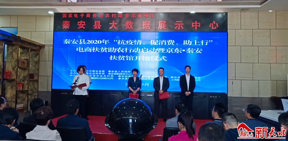 新天水訊【天水日?qǐng)?bào)記者 張文都】5月25日,秦安縣2020年“抗疫情、促消費(fèi)、助上行”電商扶貧助農(nóng)行動(dòng)啟動(dòng)暨京東?秦安扶貧館開館儀式在秦安縣電子商務(wù)公共服務(wù)中心啟動(dòng)。這標(biāo)志著該縣借助“互聯(lián)網(wǎng)+” 提升有效供給,進(jìn)一步拓寬優(yōu)質(zhì)農(nóng)特產(chǎn)品銷售渠道,以新業(yè)態(tài)新模式促進(jìn)消費(fèi)升級(jí),有效應(yīng)對(duì)疫情沖擊影響,助力守住“六保”底線,穩(wěn)住經(jīng)濟(jì)基本盤,確保高質(zhì)量打贏脫貧攻堅(jiān)戰(zhàn)。