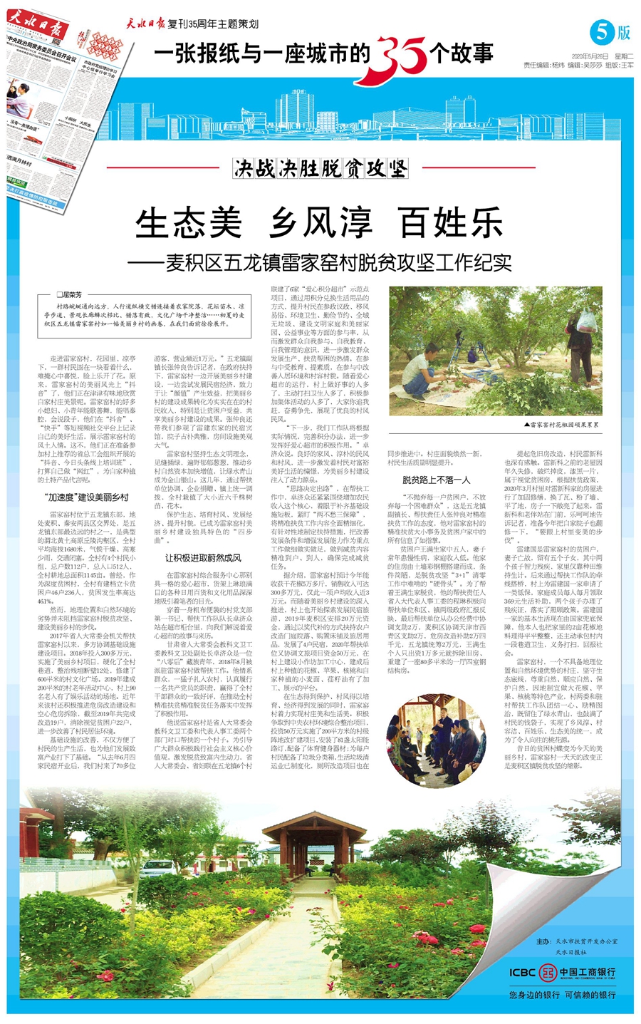 2020年是脫貧攻堅(jiān)決戰(zhàn)決勝之年,恰逢《天水日報》復(fù)刊35周年。