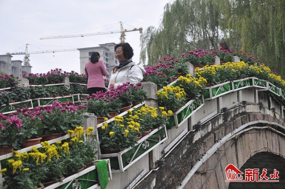 秋天的湖水是碧透的,橫跨湖水的拱橋在各色菊花的裝點(diǎn)下是嬌美的。沿湖四周的菊花此第綻放,倩影在湖水中若隱若現(xiàn),湖面上泛著輕霧,飄飄渺渺,如夢如幻,霧裹著菊,菊伴著霧,漫天的美麗,漫天的清香。