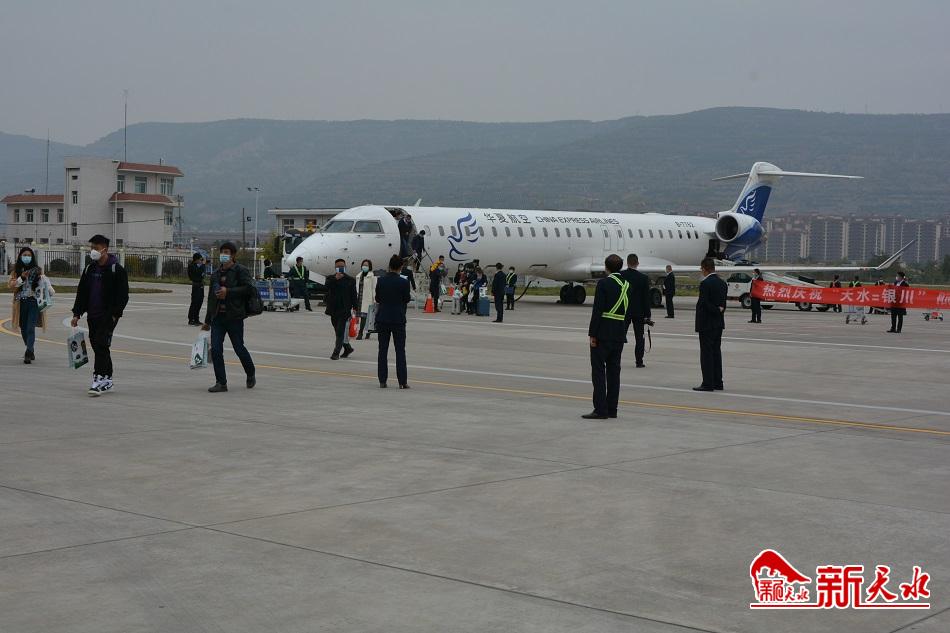 新天水訊【天水日報記者 馬哲】10月25日,隨著銀川直飛天水的第一趟航班緩緩降落天水機場,標志著華夏航空公司天水=銀川航線成功實現(xiàn)首航。副市長汪小娟出席天水——銀川航線首航儀式,并向乘坐首航航班的首位旅客贈送了機模。