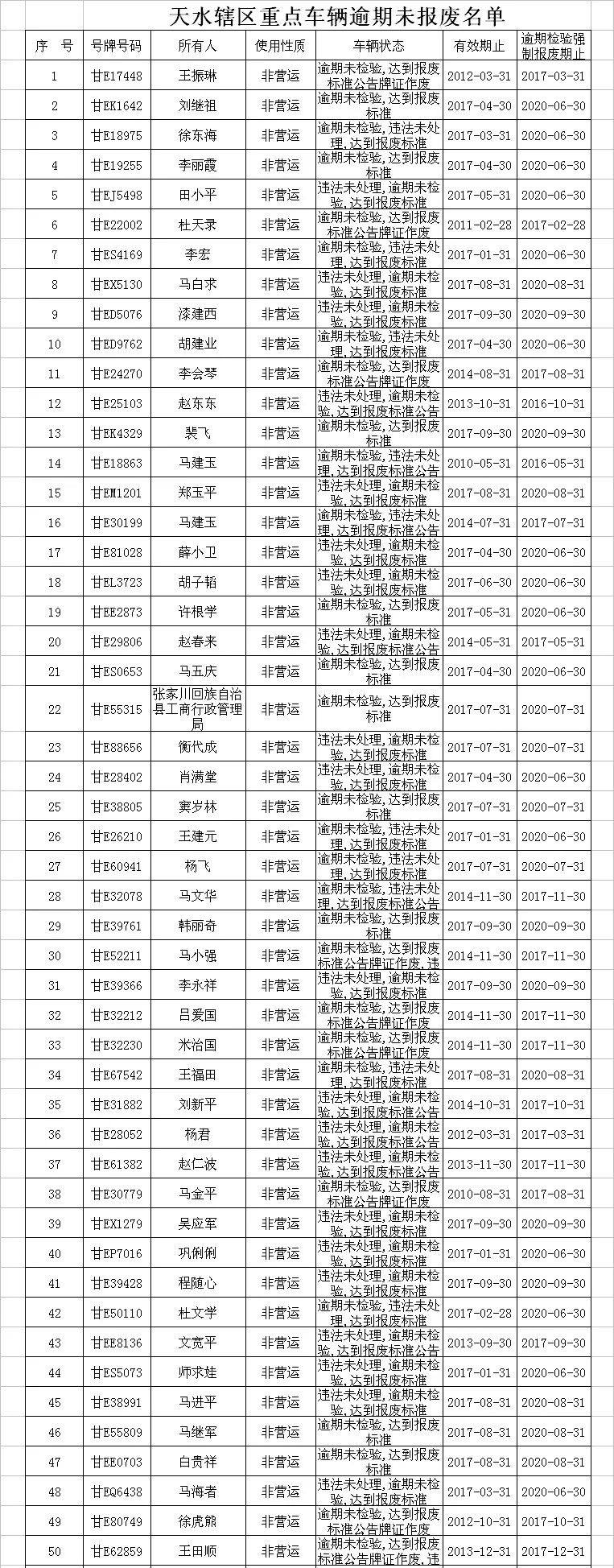 【提醒】天水市逾期未報(bào)廢重點(diǎn)車輛名單曝光