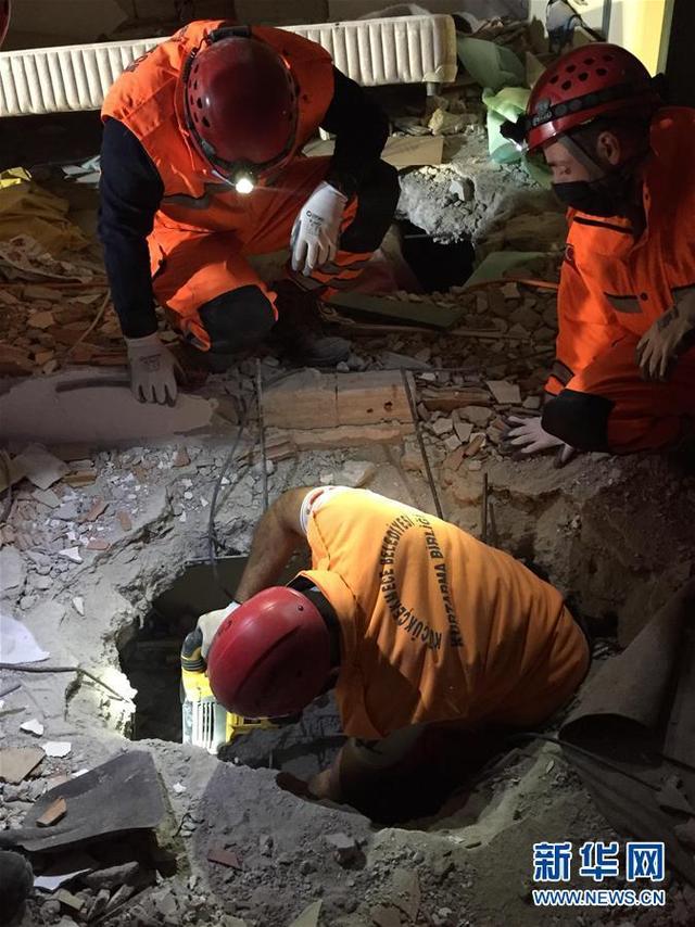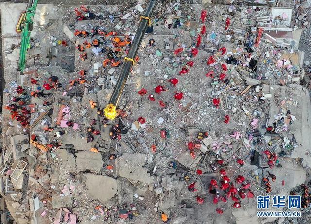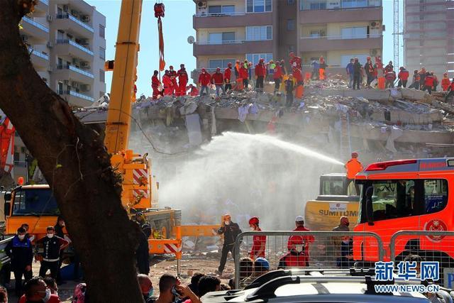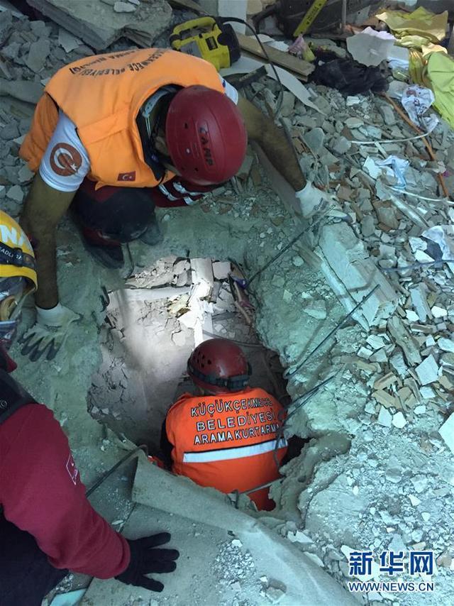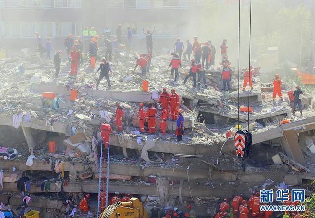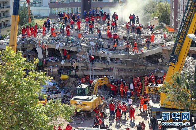 10月31日,救援人員在土耳其伊茲密爾省地震受災(zāi)現(xiàn)場(chǎng)搜尋幸存者(無人機(jī)照片)。土耳其西部、希臘東部薩摩斯島附近的愛琴海海域30日發(fā)生6.6級(jí)地震。截至目前,已造成土耳其至少25人死亡、超過800人受傷;希臘2人死亡,另有10余人受傷。新華社發(fā)