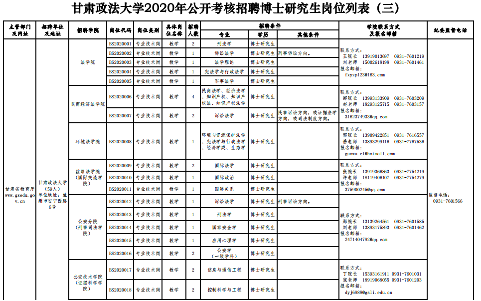 甘肅政法大學(xué)2020年公開(kāi)考核招聘博士研究生公告(三)