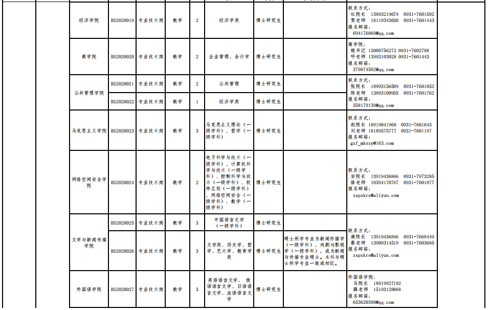聯(lián)系方式:甘肅醫(yī)學(xué)院組織部(人事處)人事科