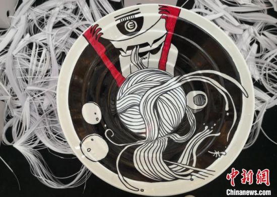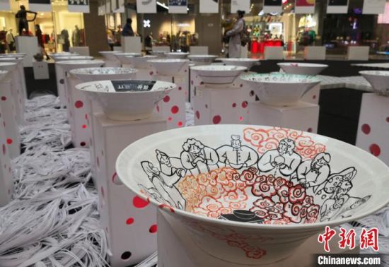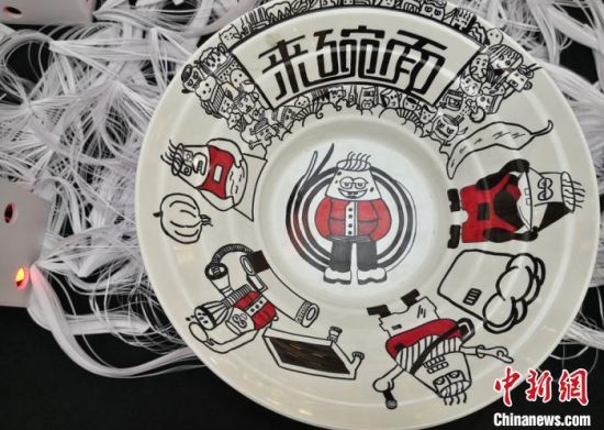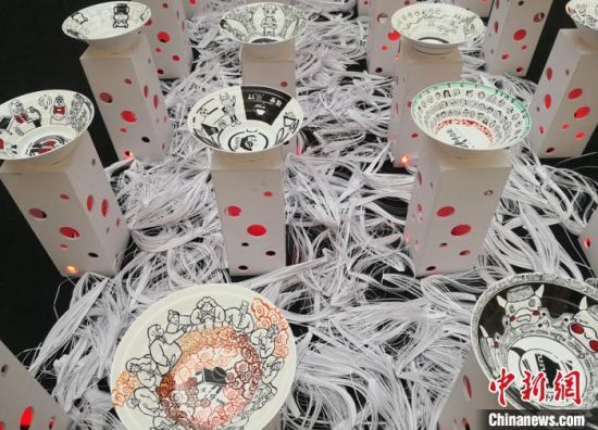 透過碗口,可以看到蘭州牛肉面的大千世界。近日,蘭州財經(jīng)大學(xué)藝術(shù)學(xué)院28名學(xué)生,以“蘭州牛肉面”為主題創(chuàng)作牛肉面文創(chuàng)產(chǎn)品在蘭州展出。同學(xué)們在直徑35厘米的碗口,大膽構(gòu)思創(chuàng)作,通過面的制作、食材,以及大家分享牛肉面的場景和對未來牛肉面的暢想等,表達牛肉面的“前世今生”,民眾在碗中欣賞“牛肉面”藝術(shù)。(記者 劉玉桃)
