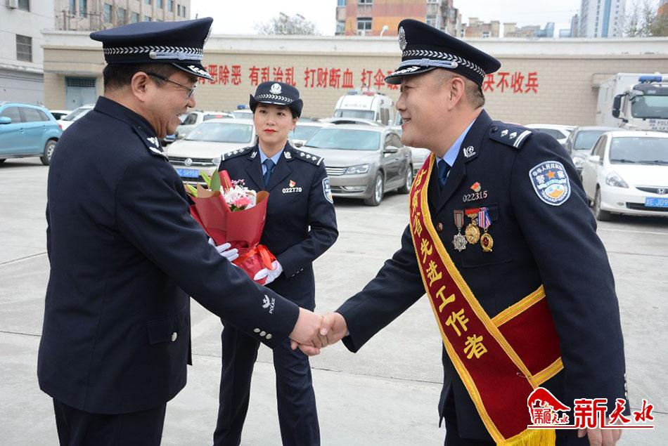 新天水訊【記者蔚軍平】12月8日,赴蘭參加“2020年甘肅省勞動模范和先進(jìn)工作者表彰大會”的市公安局秦州分局信訪室主任漆天生載譽歸來,市、區(qū)兩級公安機(jī)關(guān)在市公安局舉行歡迎儀式,副市長、市公安局局長郭慶祥參加儀式。
