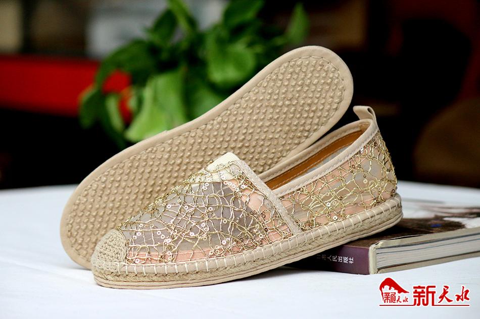 “最開始的麻鞋是用純麻做的鞋底和鞋幫,后來工藝逐漸改進(jìn),對(duì)部分制作麻鞋的材料和款式進(jìn)行了改進(jìn)和創(chuàng)新。”牛君俊說,傳統(tǒng)甘谷麻鞋制成后,須在鞋底滲入厚厚一層稀牛糞以堅(jiān)其質(zhì),風(fēng)干后硬似牛皮,用以防水。現(xiàn)在則是在麻鞋底上貼了牛筋底或橡膠底,室內(nèi)室外都可以穿,而且防水防潮。