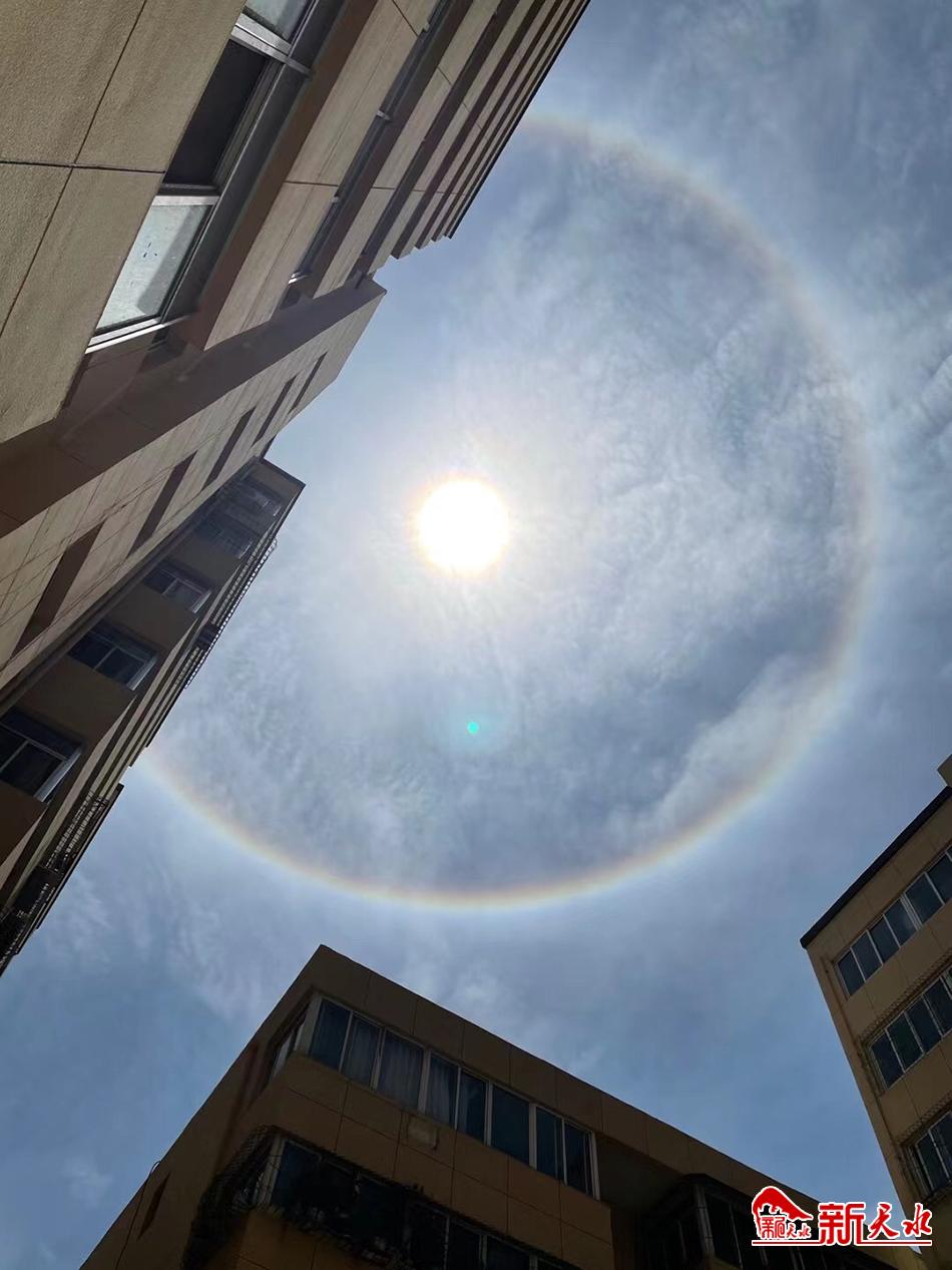 新天水訊【記者 王曉華】6月21日早上10時許,我市上空出現(xiàn)日暈天象,太陽周圍被一道美麗的光圈籠罩,眾多市民紛紛拿出手機記錄這一奇特的天象景觀,一時間朋友圈被日暈美照霸屏。