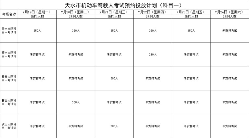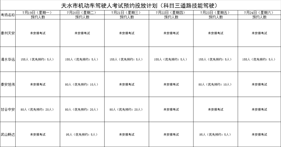 ?天水機(jī)動(dòng)車駕駛?cè)丝荚囉?jì)劃公告(2021年7月19日至7月24日)