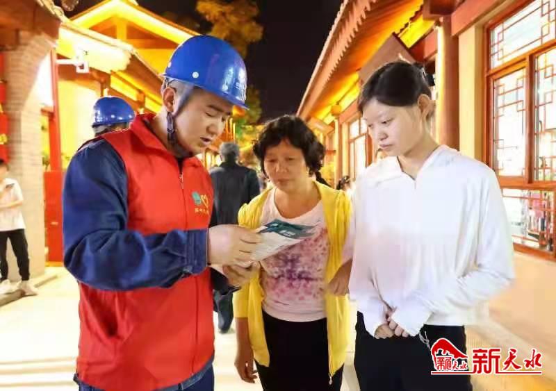 新天水訊 9月2日晚,一群“紅馬甲”來到天水市網(wǎng)紅打卡地——西關(guān)古城片區(qū),在流光溢彩的燈光中, 開展用電常識宣傳和創(chuàng)建全國文明城市志愿服務(wù)活動(dòng)。