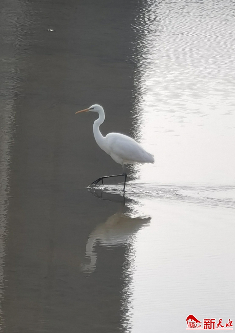11月17日,冬日暖陽下,藉河風(fēng)情線孫家坪大橋段,風(fēng)皺波滟,一只白鷺在水中悠然漫步。它一身皎潔如雪,長腿輕巧曼妙,或引頸長鳴,或低首覓食,濺起水花朵朵,為天水的冬日增添了一道生機(jī)祥和的景象。