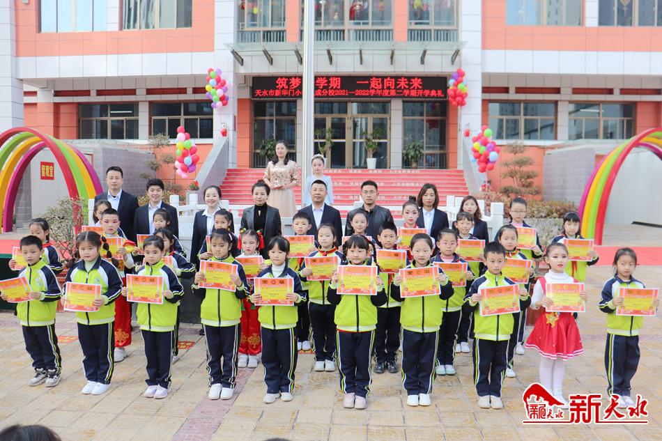 新年伊始,萬(wàn)象更新。隨著新學(xué)期的開(kāi)始,天水各中小學(xué)紛紛舉行豐富多彩的開(kāi)學(xué)活動(dòng),以良好的精神狀態(tài)迎接新學(xué)期,開(kāi)啟新征程,一起向未來(lái)。圖為天水市新華門(mén)小學(xué)玉成分校舉行“筑夢(mèng)新學(xué)期 一起向未來(lái)”開(kāi)學(xué)典禮活動(dòng)。