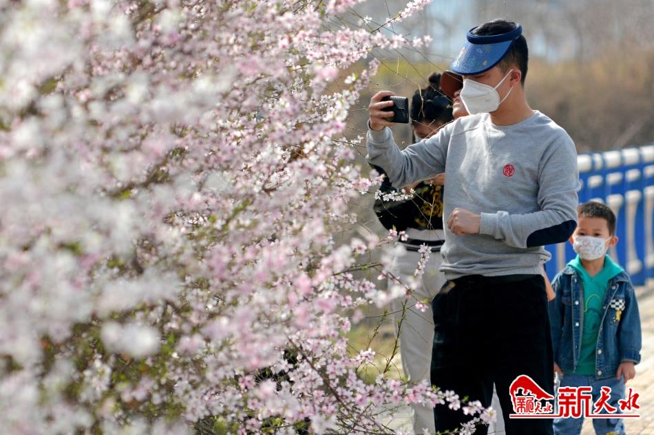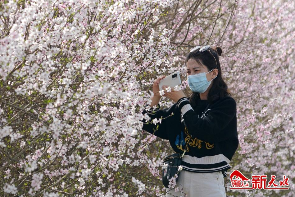 3月15日,秦州區(qū)秦州大道太京鎮(zhèn)二十鋪村路段南側(cè)的一片桃花開得正艷,吸引路過的市民駐足拍照。
