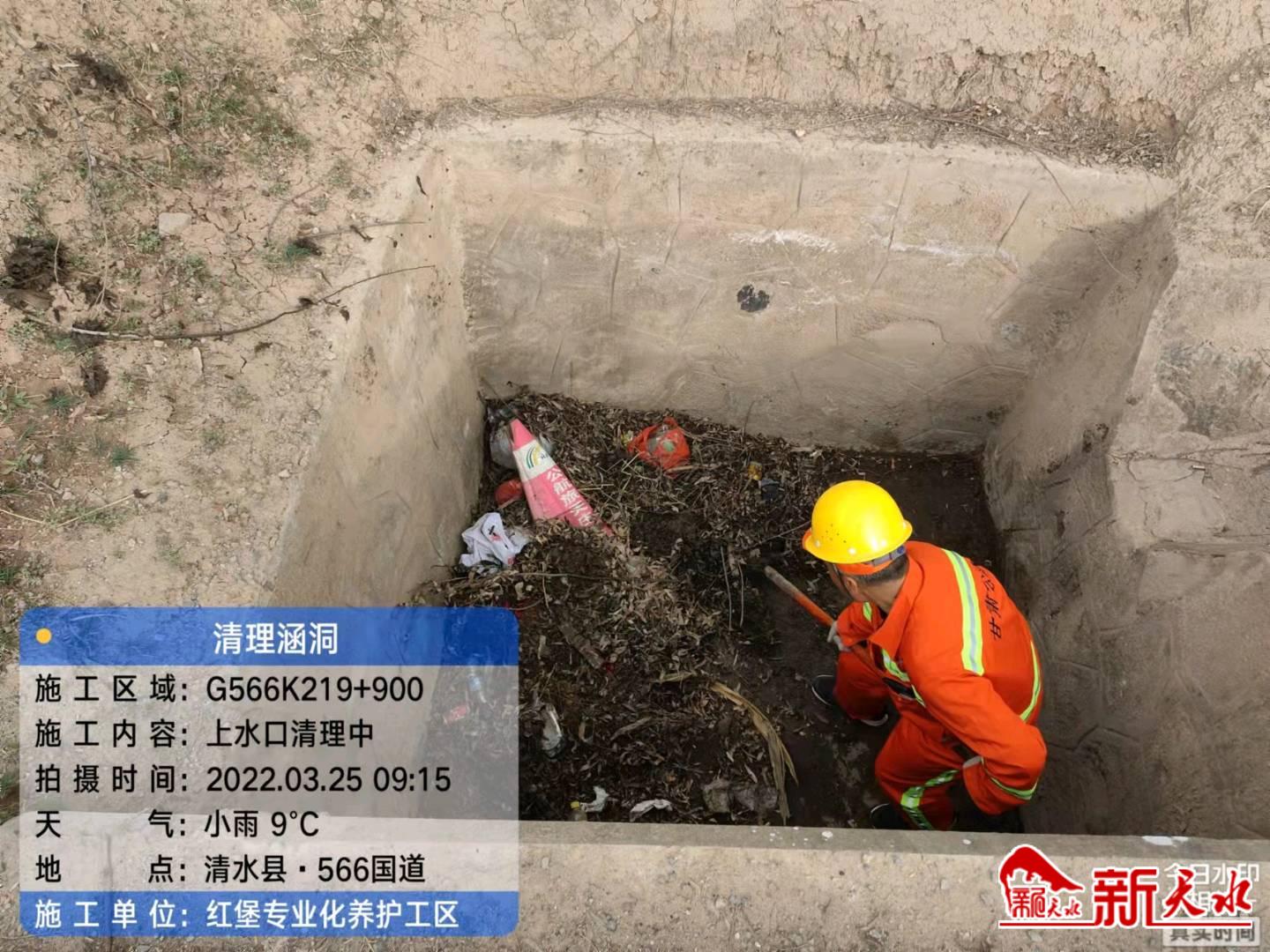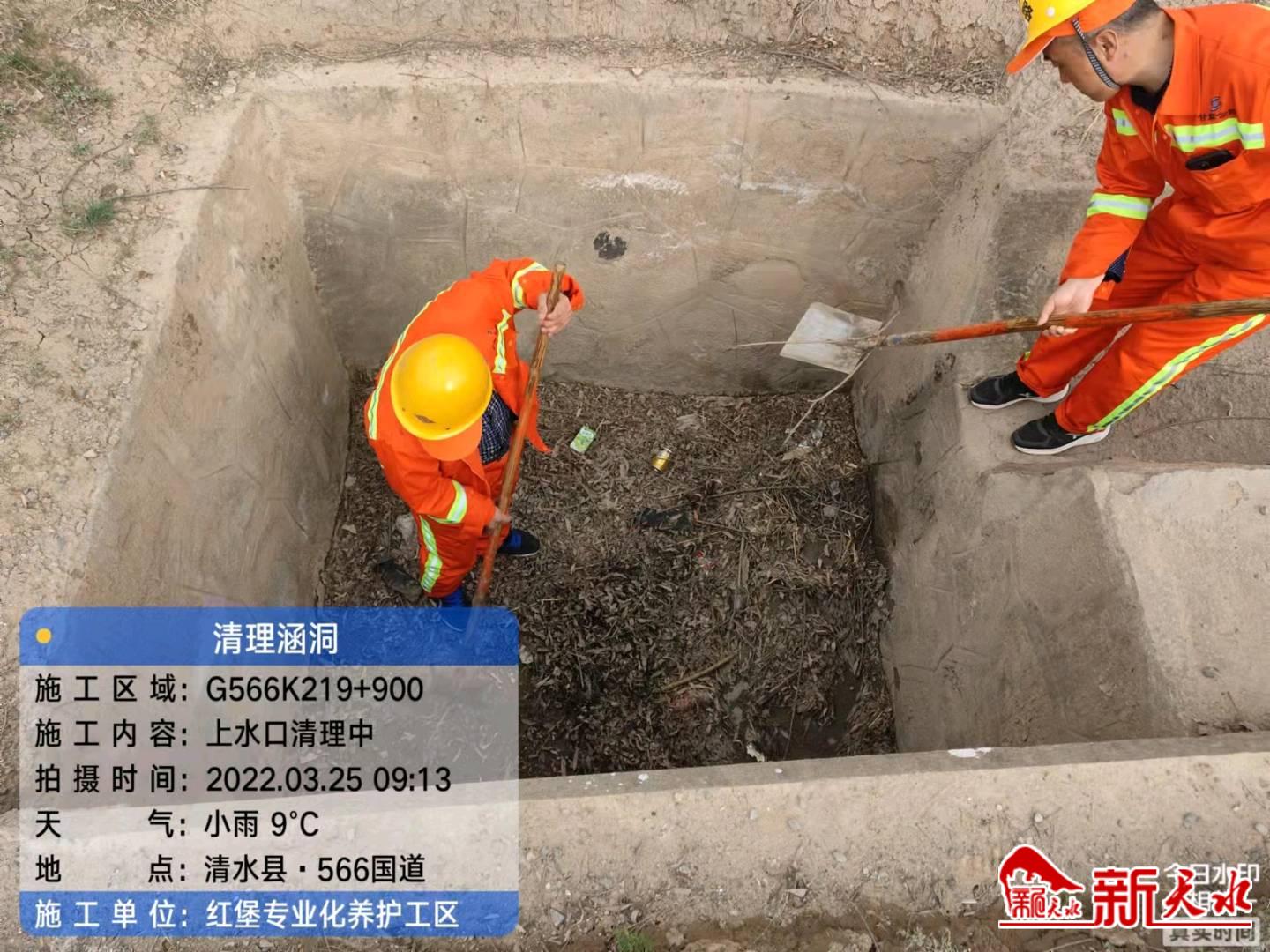 新天水訊 為了有效保證涵洞正常排水,消除公路安全隱患,近日,清水公路段及時組織人員對管養(yǎng)路段內(nèi)涵洞進水口、出水口、洞內(nèi)、邊溝內(nèi)的雜物、垃圾等進行集中清理,達到涵洞口清潔,無雜物、無垃圾、無固體廢棄物、洞內(nèi)無淤積物,排水通暢,確保排水功能良好運行。(胡艷紅)