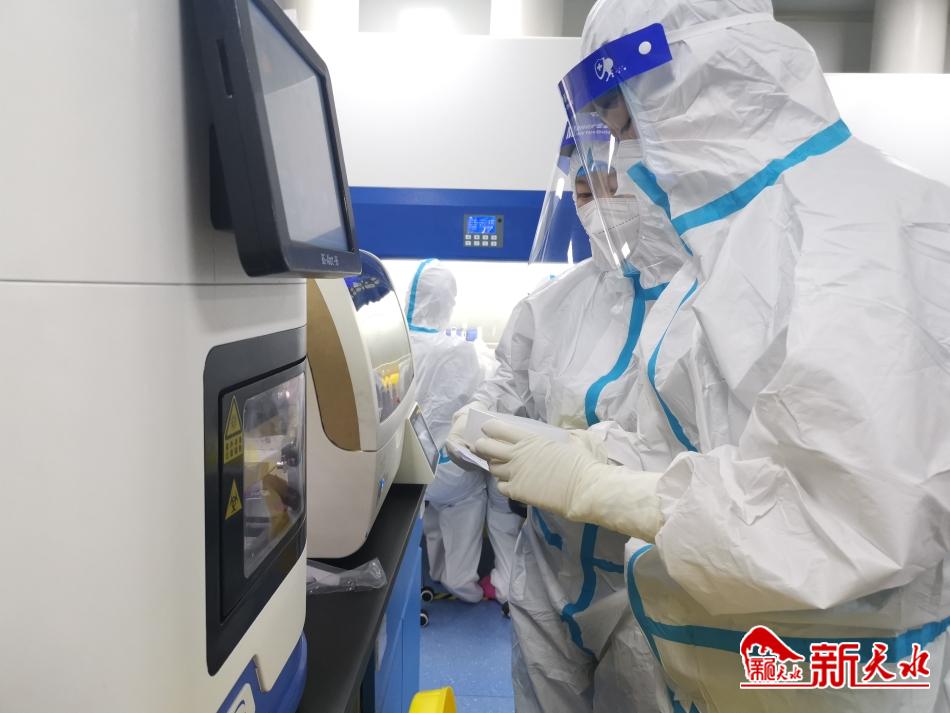 核酸檢測是目前發(fā)現(xiàn)病毒、防控疫情的最有效、最有力手段。連日來,天水市新冠病毒核酸城市檢測基地不間斷運轉(zhuǎn),檢測人員24小時值守進行樣本的核酸檢測,做到來樣隨到隨檢,高效精準做好每一份標本檢測,爭取在最短時間出具檢測結(jié)果。檢驗人員用自己的責任與擔當踐行著無所畏懼的堅守,為我市疫情防控工作提供了強有力的技術(shù)支撐。