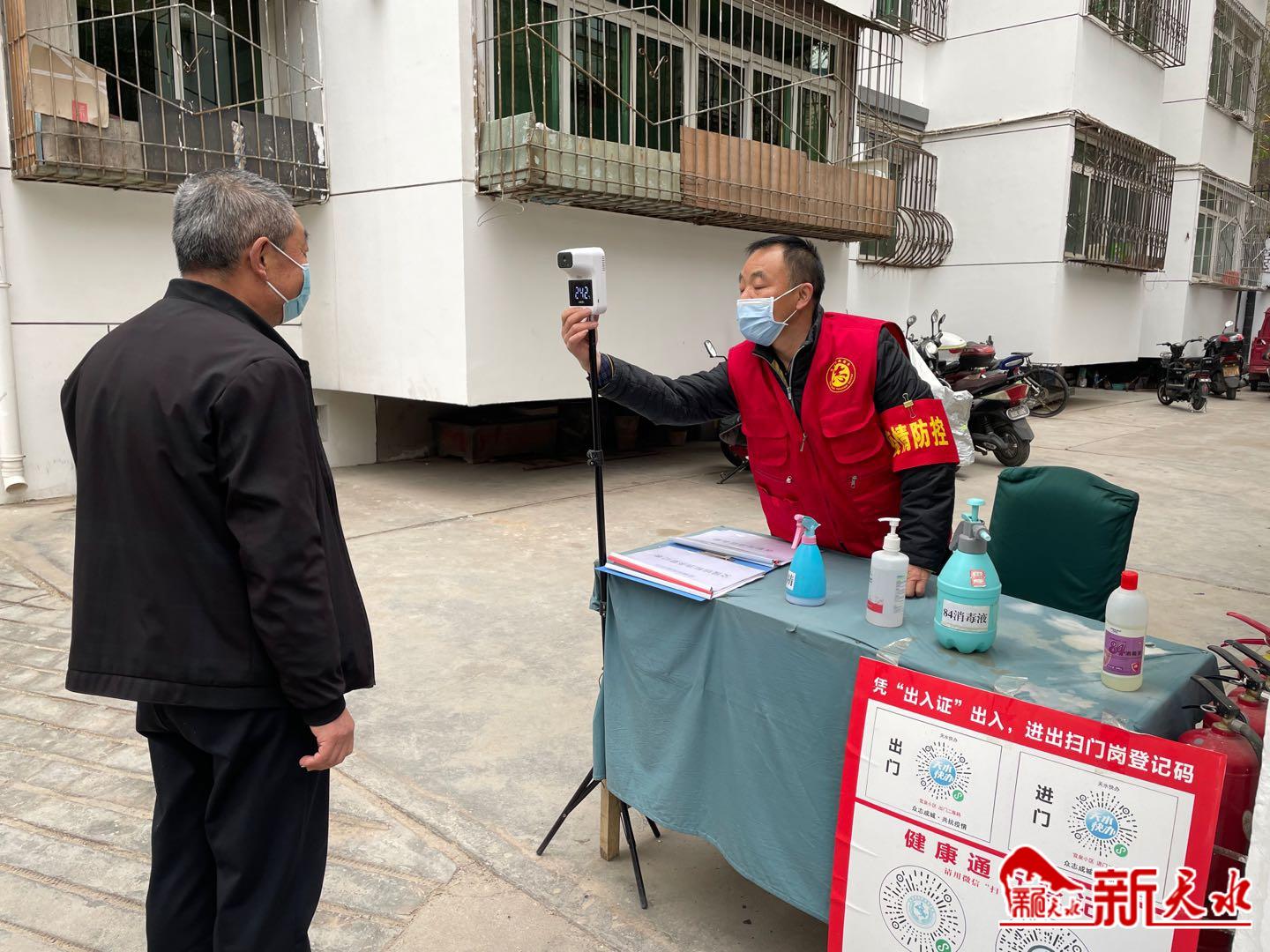 “紅馬甲”守好小區(qū)“防疫門”。 疫情就是命令,防控刻不容緩。官泉小區(qū)黨支部在小區(qū)門口設(shè)置登記點,配備登記本、測溫儀、小喇叭、通行碼、消毒劑、宣傳頁,在小區(qū)門口張貼防疫規(guī)定和溫馨提示?!罢埑鍪境鋈胱C,量一下體溫,掃一下場所碼,沒有特殊情況請不要外出”,小區(qū)支部黨員志愿者不厭其煩地向進(jìn)出小區(qū)的居民宣講。