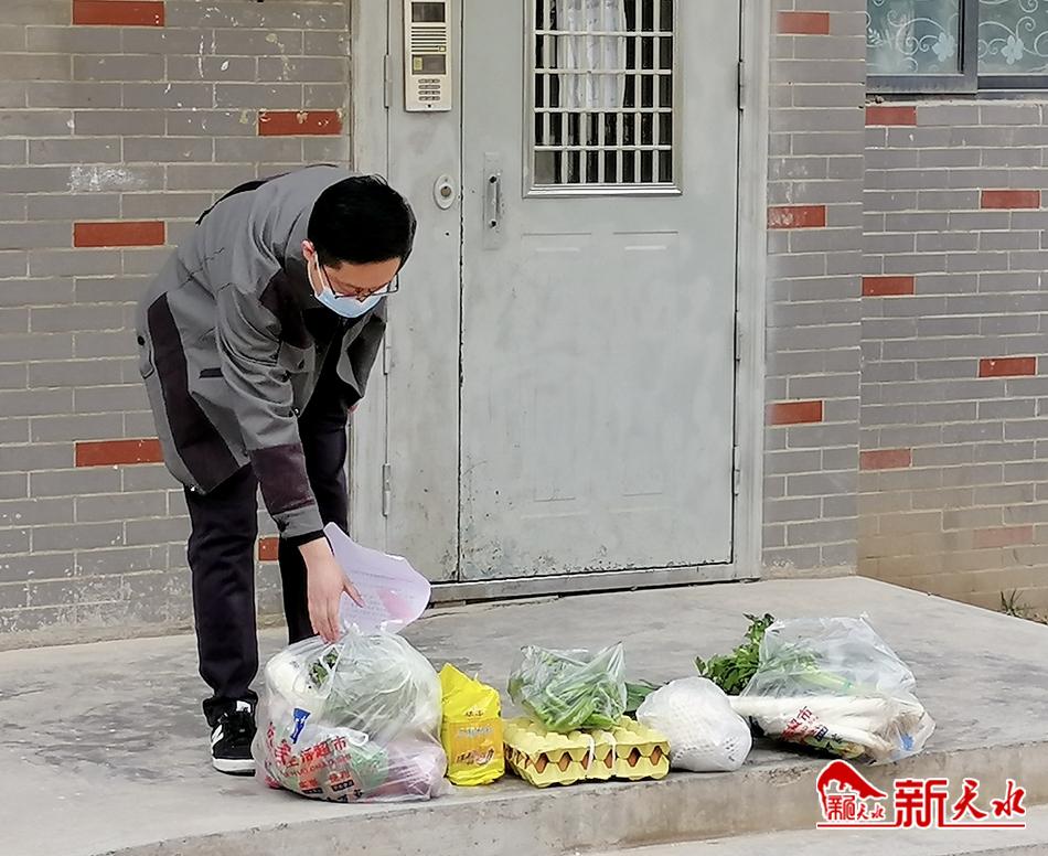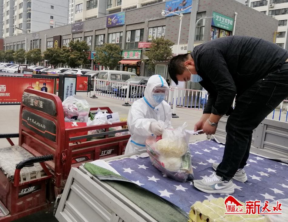 在和諧家園C區(qū)記者看到,物業(yè)工作人員身穿防護(hù)服“全副武裝”,從配送車內(nèi)將一袋袋打包好的生活用品按訂購清單地址一一放到居民所住單元樓門口,待電話、微信通知業(yè)主取走東西后方才離去。