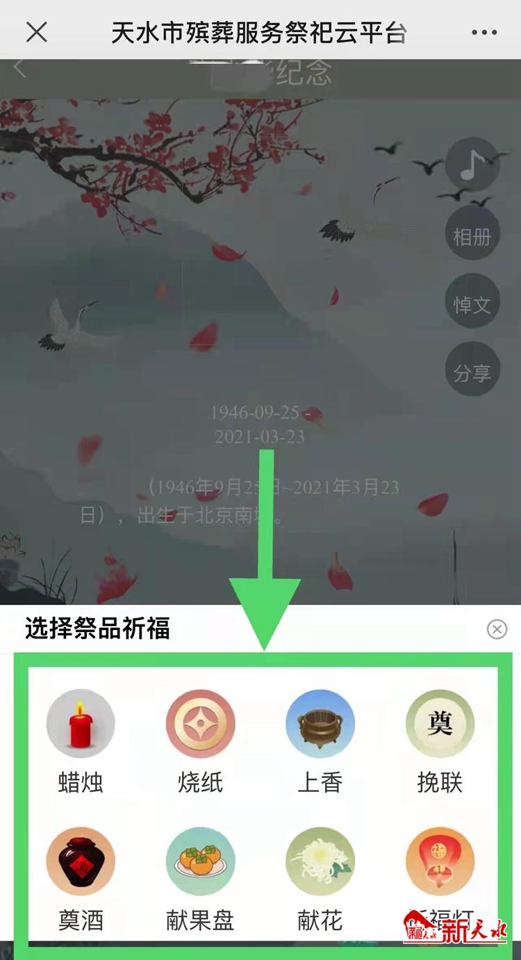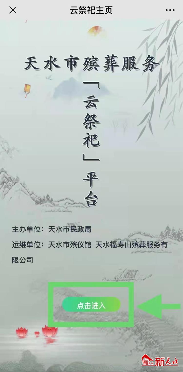 今年清明期間,天水市暫停所有現(xiàn)場(chǎng)和集中祭祀活動(dòng),倡議廣大市民群眾積極培育文明、綠色、簡(jiǎn)約的現(xiàn)代祭祀新風(fēng),可通過(guò)“天水市殯葬服務(wù)‘云祭祀’平臺(tái)”開(kāi)展網(wǎng)上祭祀,寄托哀思。