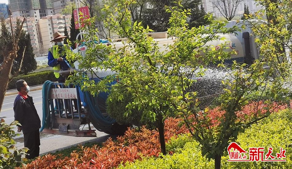 隨著天氣的日漸暖和,道路兩旁的綠化苗木也開始返綠。4月5日,在秦州區(qū)藉河北路,園林工人正忙著給綠化苗木進(jìn)行澆灌,讓苗木有充足的水分供應(yīng),確保苗木正常返綠。