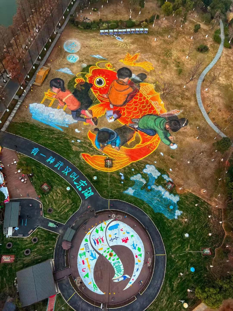 “在6000平方米的草地畫錦鯉、黃鶴樓,這讓我覺得很酷。”今年1月,畢業(yè)于視覺傳達專業(yè)的“95后”女生胡美婷被畫作吸引,決定加入幕后創(chuàng)作團隊——超級畫咖。