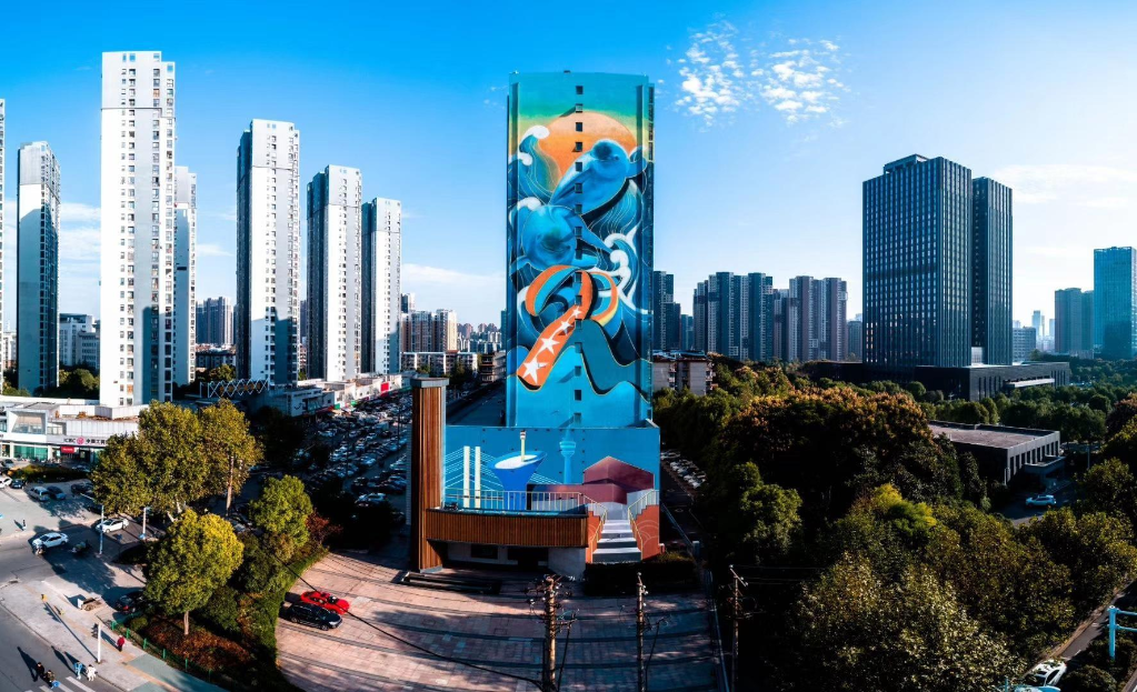 60米高的江豚主題壁畫。(新華社發(fā))