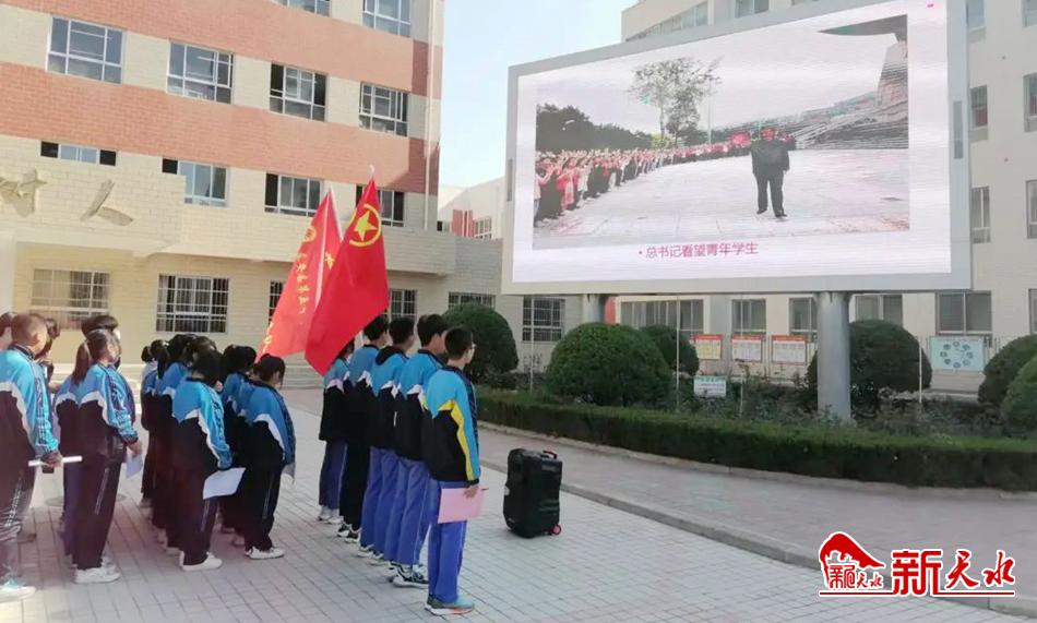 “我志愿加入中國共產(chǎn)主義青年團(tuán),堅決擁護(hù)中國共產(chǎn)黨的領(lǐng)導(dǎo),遵守團(tuán)的章程、執(zhí)行團(tuán)的決議……為共產(chǎn)主義事業(yè)而奮斗?!惫睬鄨F(tuán)秦安縣第五中學(xué)團(tuán)委的團(tuán)員們高舉右手,緊握右拳,在校團(tuán)委委員秦彩霞的帶領(lǐng)下重溫入團(tuán)誓詞,句句鏗鏘有力。