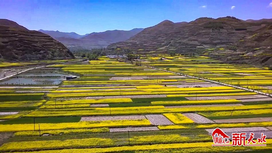新天水訊【通訊員 何慧】近日,武山縣沿安鄉(xiāng)九千畝油菜花進入盛花期。大南河河畔金黃遍野,花香四溢,蝶飛蜂舞,展示著武山大地初夏時節(jié)特有的氣息。