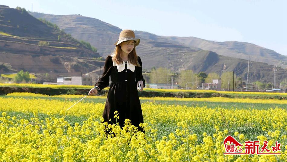 5月5日,筆者在沿安鄉(xiāng)李莊村看到,楊岷路兩旁、大南河兩岸的油菜花競相綻放,一片金黃。穿行在開滿油菜花的田埂小道上,徘徊于花香四溢的花海中,微風(fēng)吹過,油菜花香味撲面而來,沁人心脾。一簇簇、一片片的油菜花在風(fēng)中搖曳生姿,折射出迷人的光彩。 “今天天氣特別好,我們幾個朋友一起過來游玩,觀賞一下沿安的油菜花,拍拍照,做一下直播,真的很美?!闭诤团笥雅恼盏挠慰涂翟破秸f,對于沿安的油菜花早有耳聞,今天一見,真的很漂亮,交通也方便,沿安是有山有水有菜花,風(fēng)景特別美。