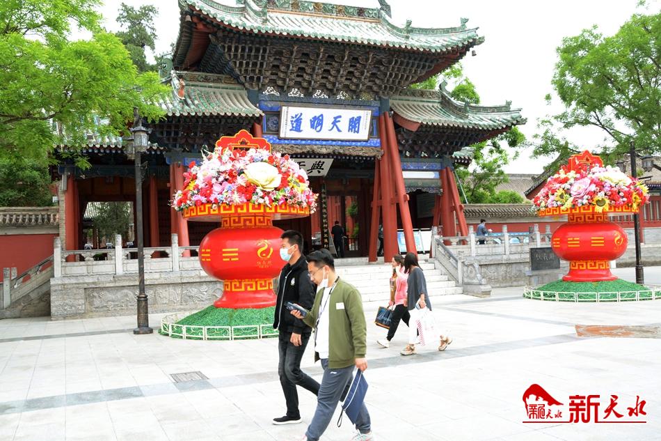 5月10日, 伏羲廟景區(qū) 、天水民俗博物館恢復(fù)對外開放的第二天一早,記者來到伏羲廟景區(qū),景區(qū)內(nèi)已經(jīng)有游客在參觀拍照,天水民俗博物館內(nèi)也有市民前來賞景。