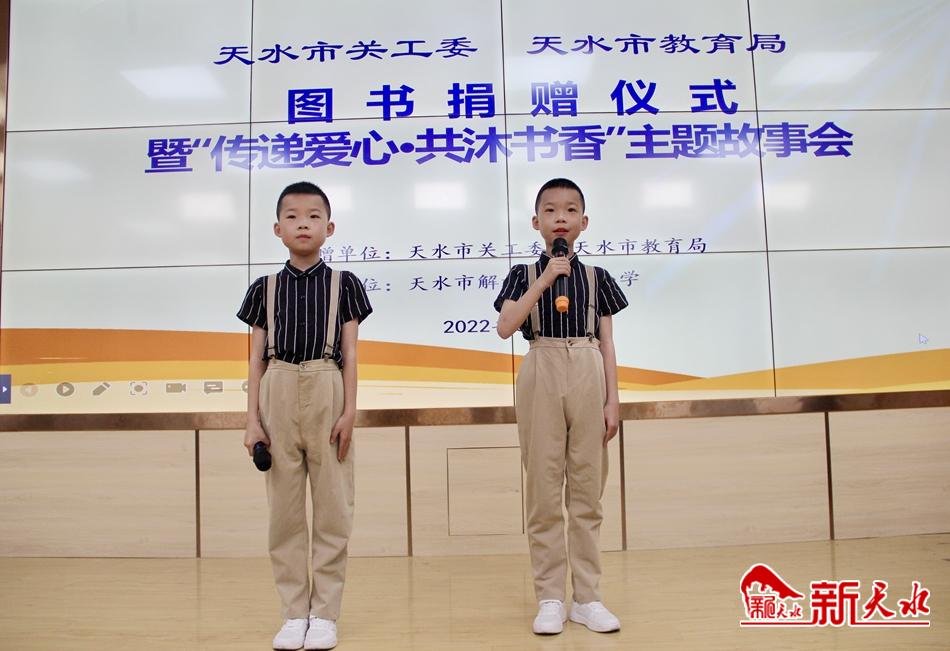 新天水訊【見習記者王琴】5月10日,天水市關工委、市教育局捐贈圖書儀式暨“傳遞愛心 共沐書香”主題故事會活動在解一小學舉辦。市關工委、市教育局、市老干局、秦州區(qū)相關負責人及該校四至六年級學生代表、語文教師共50余人參加了活動。
