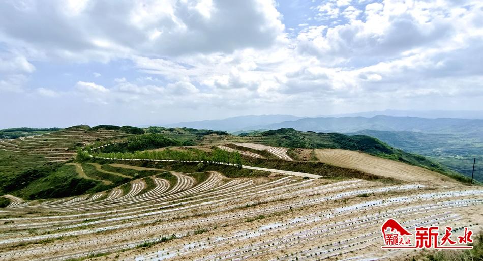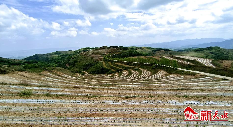 初夏時(shí)節(jié),在秦州區(qū)太京鎮(zhèn)馬岐山片區(qū)糧食生產(chǎn)千畝示范點(diǎn),層層梯田阡陌縱橫,滿山集中連片覆膜種植的玉米和大豆蕩漾起綠波,鋪展出一幅田園風(fēng)光生機(jī)盎然的壯美景象。