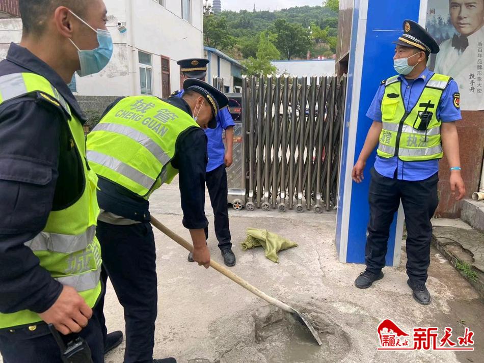 秦州區(qū)執(zhí)法局玉泉中隊修補轄區(qū)破損臺階