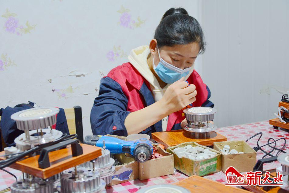 正在車間內(nèi)組裝電茶爐的女工楊文博,老家在甘谷縣大莊鎮(zhèn)付家河村,她家兩個孩子都在縣城上幼兒園?!斑@兒工作很方便,平時也能接送上孩子,不耽誤給孩子做飯,周末可以陪孩子不用上班?!睏钗牟┱f,她現(xiàn)在帶孩子和上班都能兼顧,每個月1600多元的工資也足夠補(bǔ)貼家用。