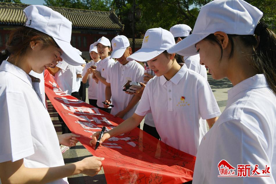 6月15日,“創(chuàng)建全國(guó)文明城市,我參與、我承諾”青年志愿者服務(wù)公祭伏羲大典簽名活動(dòng)在伏羲廣場(chǎng)舉行。
