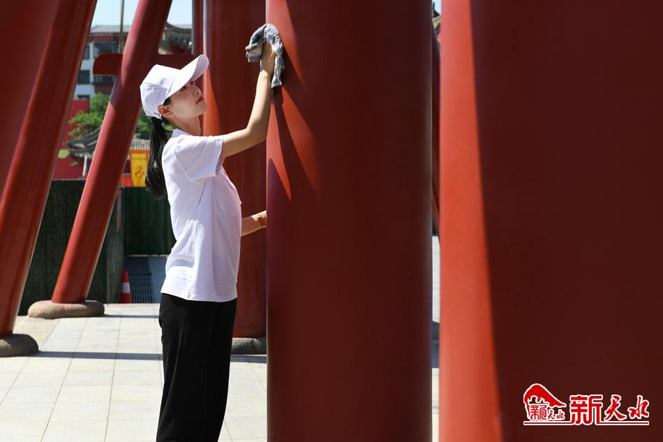 當(dāng)日,由甘肅工業(yè)職業(yè)技術(shù)學(xué)院100名學(xué)生組成的志愿者服務(wù)隊(duì)現(xiàn)場(chǎng)簽名承諾,并對(duì)伏羲城東西牌坊、廊庭、墻面進(jìn)行了徹底清掃。