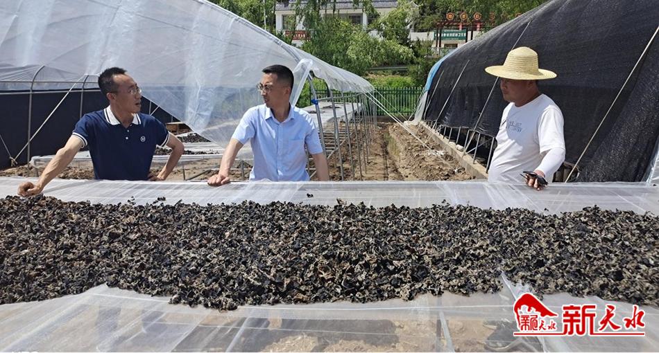 走進木耳生產大棚內,迎面是一排排、一豎豎吊起的菌棒,菌棒上長滿了密密麻麻的黑木耳,村里的務工群眾不停穿梭在菌棒間,采摘第一茬長出木耳,臉上洋溢著豐收的喜悅。