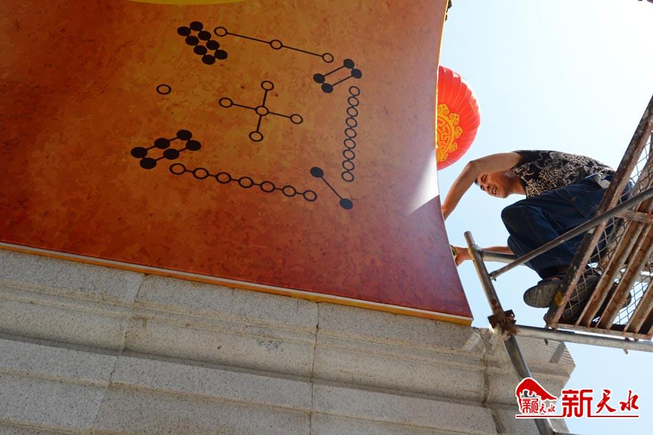 6月15日,艷陽高照。公祭伏羲大典《樂舞告祭》的演職人員頭頂烈日,在伏羲廣場認真排練;服務公祭伏羲大典的青年志愿者們在伏羲城舉行簽名活動,他們積極行動,為公祭伏羲大典提供有力保障。環(huán)衛(wèi)工清掃街道,施工人員裝飾伏羲城牌樓拱門、油漆街道防護欄,美化市容市貌。古城天水和天水人民以熱情好客的態(tài)度、優(yōu)質高效的服務、整潔文明的形象歡迎各位賓朋的到來。新天水記者孫鎮(zhèn) 攝