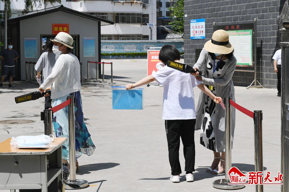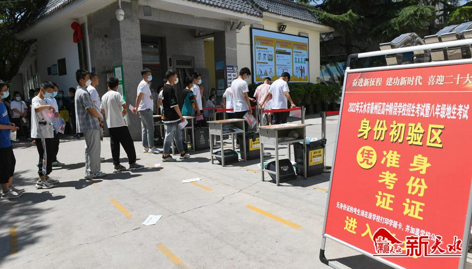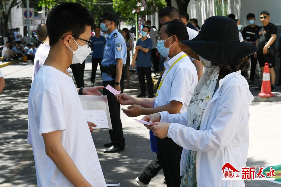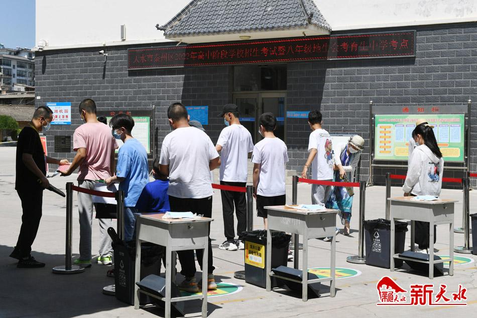 6月16日,在天水市秦州區(qū)2022年高中階段學(xué)校招生考試育生中學(xué)考點(diǎn)參 加中考的考生有序進(jìn)入考場(chǎng)。