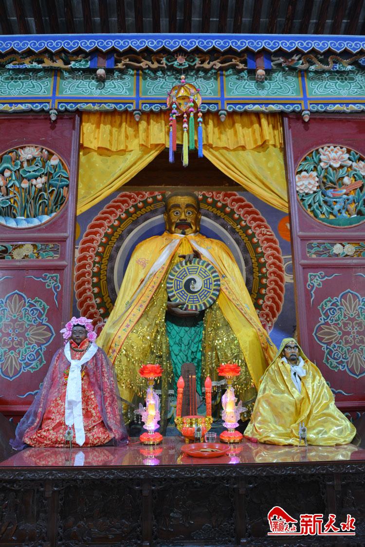 穿過(guò)午門(mén)進(jìn)入伏羲廟,只見(jiàn)院內(nèi)香煙繚繞,古柏蒼翠森然?!把矍斑@八棵古柏樹(shù),稱八卦柏,是按照伏羲先天八卦的方位栽植。據(jù)《史記·卦禪書(shū)》記載,早在戰(zhàn)國(guó)時(shí)期,秦穆公曾設(shè)西疇祭祀青帝,而西疇就是卦臺(tái)山,青帝就是伏羲?!崩钜灼秸f(shuō),現(xiàn)在我們看到的先天殿、東西朝房這些建筑均建于20世紀(jì)80年代以后,是在政府指導(dǎo)下由民間人士捐資、捐款、投勞建成。