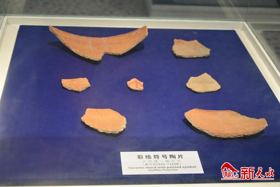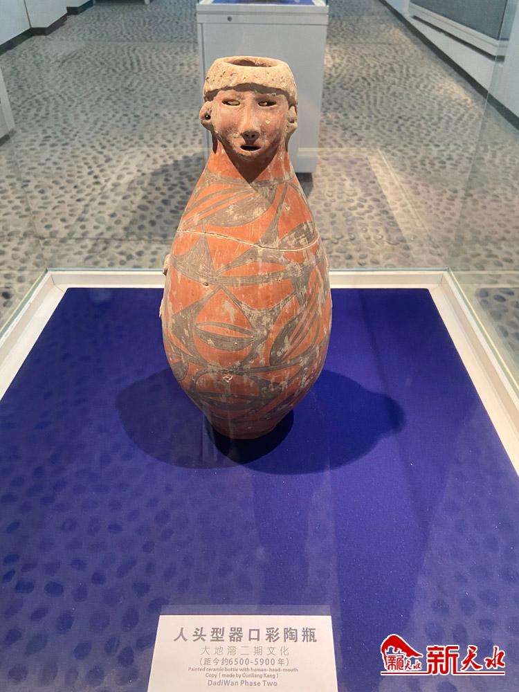 隔著玻璃櫥窗,形如繡花針大小的6個“骨針”整齊排列,磨制得光滑精美。在另一側(cè),“梳著齊劉海”的彩陶人頭瓶則體現(xiàn)著6000多年前先民們的審美和藝術(shù)思維。她兩耳穿孔,口目鏤空,顯得生動有趣,被評為國家級珍寶。然而,讓人最覺神秘的卻是一幅用黑色顏料繪制而成的中國最早的地畫作品,雖然粗獷古樸,但寥寥數(shù)筆卻繪出了一幅生動的畫面,不少專家都撰文解析這幅地畫的內(nèi)容。