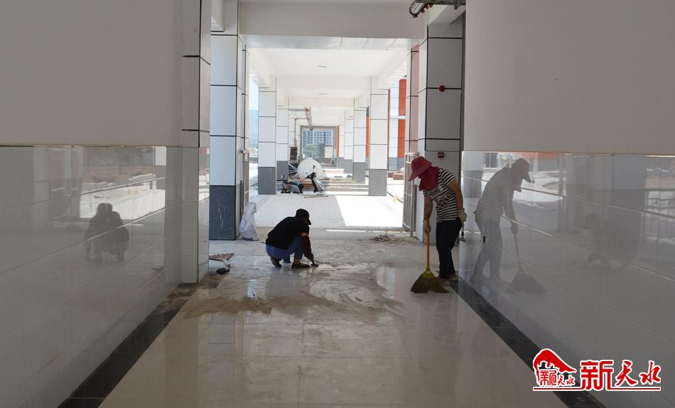 7月8日,記者來到太京鎮(zhèn)劉家莊小學(xué)施工現(xiàn)場,只見南北方向的一座連廊將教學(xué)樓、行政樓三棟建筑并排連接起來,紅白兩色相間的建筑外墻看上去格外醒目。在過道和樓梯間,可以看到施工人員正在進(jìn)行弱電的收尾施工和地面的衛(wèi)生清掃。記者走進(jìn)其中一間教室,通透的大玻璃窗,視野開闊,在陽光的照射下,整個(gè)教室顯得寬敞明亮。在南側(cè)有一棟獨(dú)立的高3層的建筑,那是學(xué)校的食堂,保潔人員正在擦洗瓷磚墻面、地面以及窗戶玻璃。在操場上,施工人員頂著炎炎烈日,正在抓緊進(jìn)行操場排水、看臺(tái)等施工。