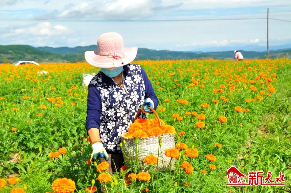 眼下正是萬壽菊盛花期,清水縣豐望鄉(xiāng)的兩千余畝萬壽菊進(jìn)入成熟采摘季,放眼望去,成片的萬壽菊花開正艷,群眾穿梭在花海間正忙著采收。
