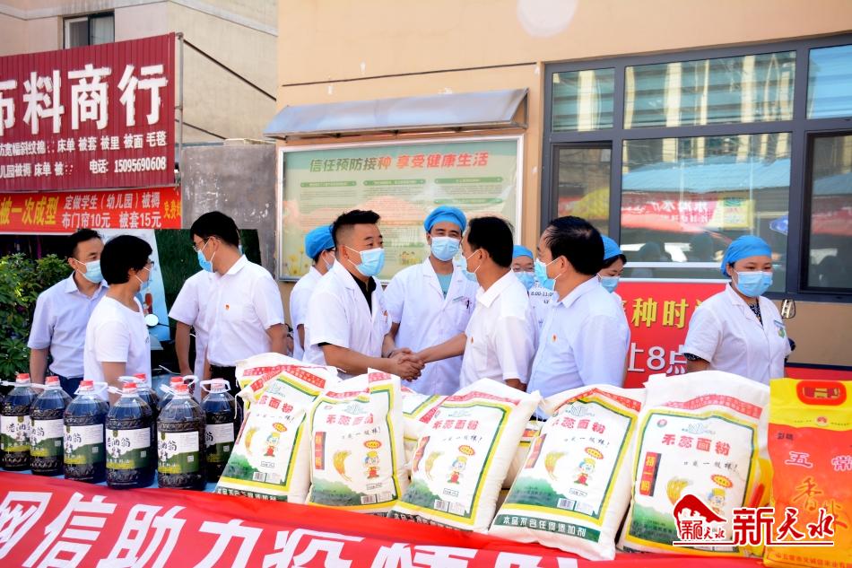 新天水訊【記者馬哲】聲聲慰問傳溫暖,時(shí)時(shí)牽掛送關(guān)懷。7月28日,市委網(wǎng)信辦、市互聯(lián)網(wǎng)行業(yè)黨工委、市網(wǎng)絡(luò)文化協(xié)會(huì)聯(lián)合組織開展“天水網(wǎng)信系統(tǒng)助力疫情防控在行動(dòng)”捐助慰問活動(dòng),看望G30天水東西出口、麥積區(qū)呂家村社區(qū)等一線防疫人員,為他們送去米面油、礦泉水、牛奶等食品以及消毒液、口罩等防疫物資。