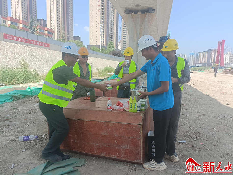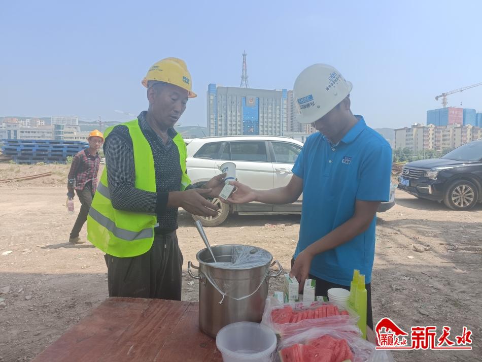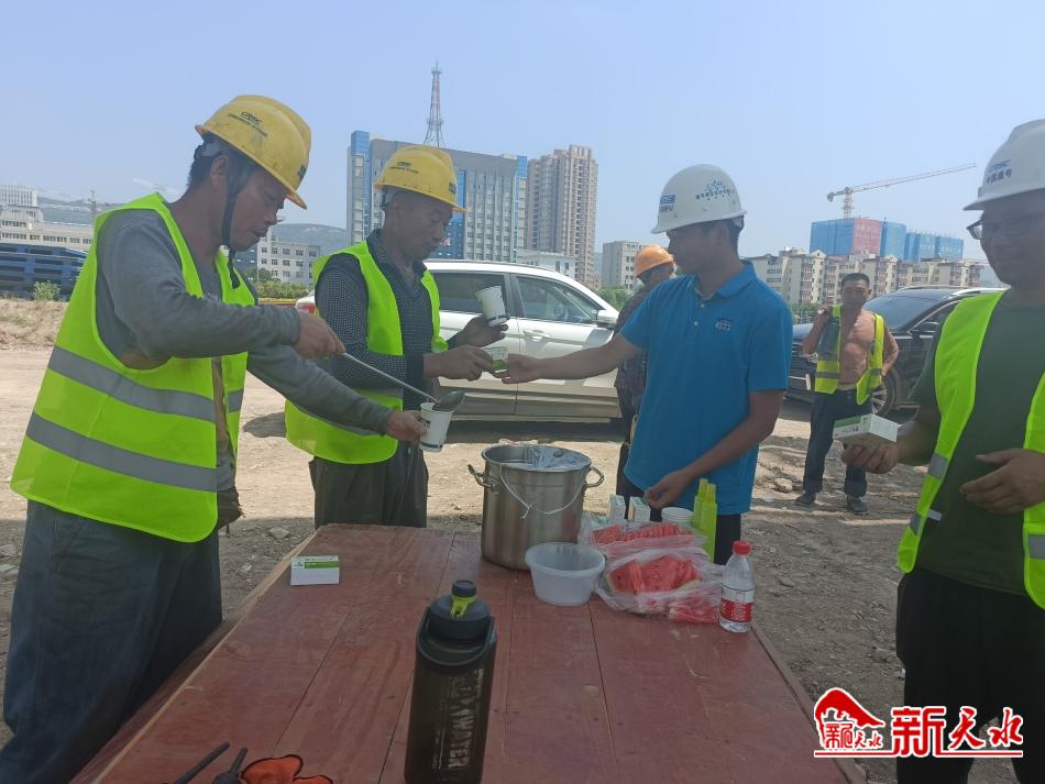 宋成軍告訴記者,自進(jìn)入夏季,他的車上就常備著藿香正氣液、礦泉水等物品?!?月7日,秦州區(qū)應(yīng)急管理局發(fā)布了秦州區(qū)高溫橙色預(yù)警信號(hào),日最高氣溫可達(dá)到37攝氏度,那幾天我們工地錯(cuò)開最高溫,錯(cuò)峰施工,為工友們每天熬制綠豆湯,及時(shí)送去西瓜,飲用水,將‘清涼’送到工友身邊”