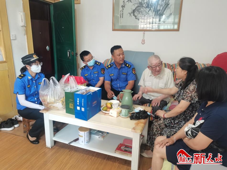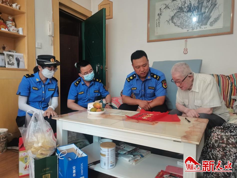 新天水訊【記者洪野】8月1日,秦州區(qū)執(zhí)法局東關(guān)中隊(duì)黨支部聯(lián)合十方堂社區(qū)黨支部看望慰問(wèn)了退伍老黨員、老戰(zhàn)士鄭瑞亭,為老人送去了黨組織的關(guān)懷和節(jié)日問(wèn)候。