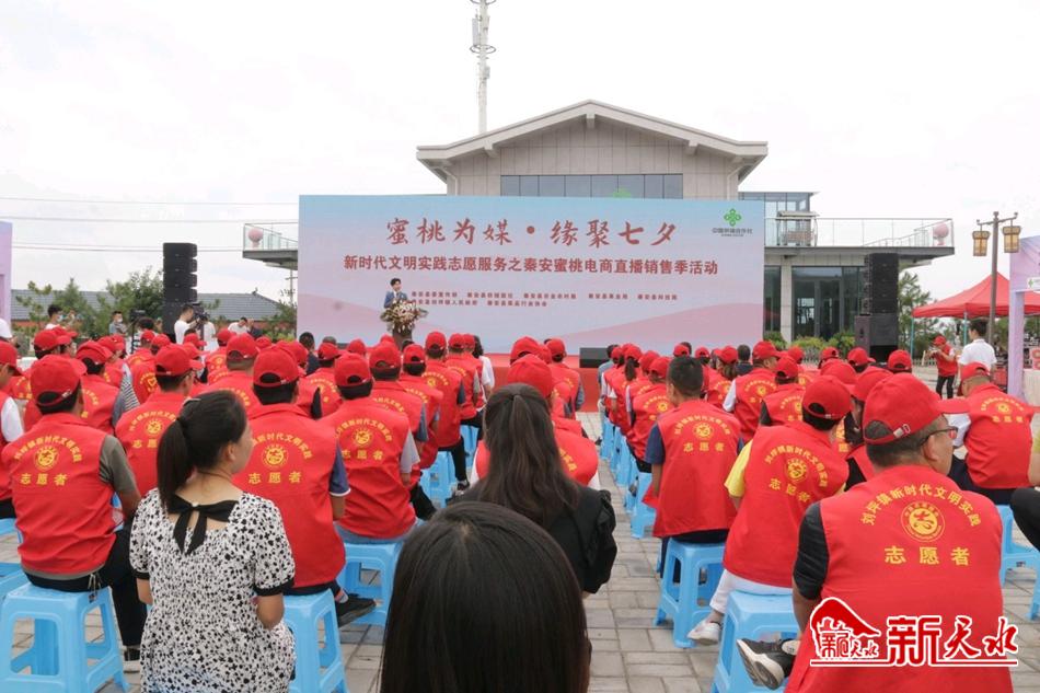 新天水訊【通訊員付蕓蕓 】8月4日,秦安縣在劉坪鎮(zhèn)周灣廣場(chǎng)舉辦了“蜜桃為媒?緣聚七夕”新時(shí)代文明實(shí)踐志愿服務(wù)之蜜桃電商直播銷售季活動(dòng),有關(guān)縣領(lǐng)導(dǎo)及相關(guān)部門負(fù)責(zé)人、劉坪鎮(zhèn)蜜桃專業(yè)合作社和干部群眾代表共計(jì)150人參加活動(dòng)。